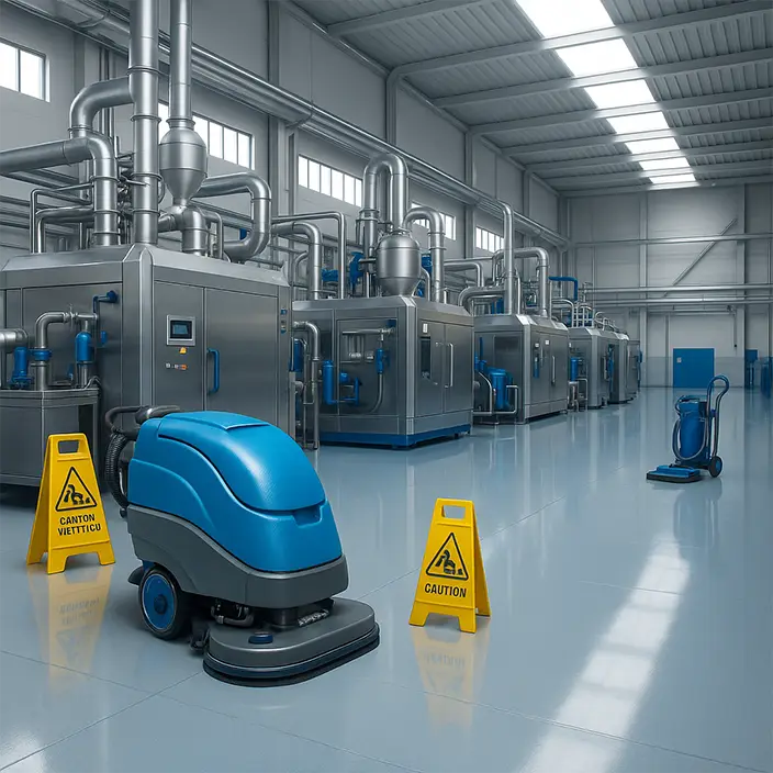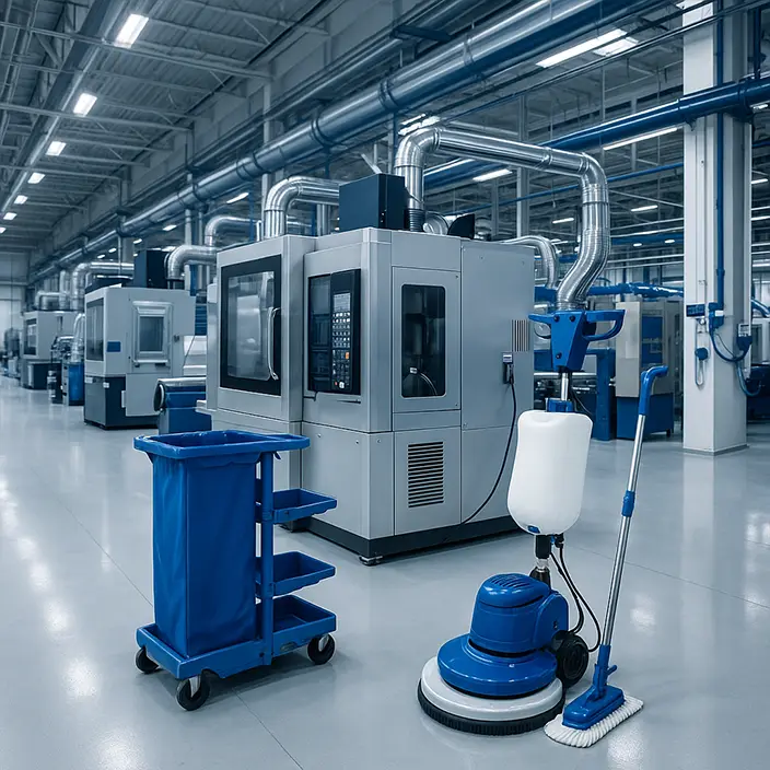 Reinigung von Produktionshallen, Lagerflächen, Verkehrswegen, Rampen und technischen Bereichen – für saubere, sichere Arbeitsumgebungen.